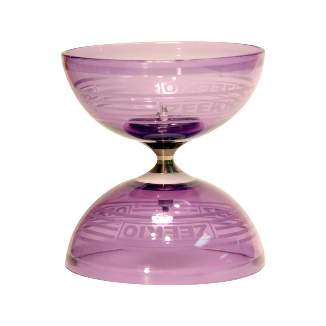 The Master Spin is one of the finest Diabolos on the market. Designed by and for diabolo players. It features full sized cups made for an ultra tough and transparent polycarbonate plastic embossed with four site lines and the Zeekio logo. These cups maintain their shape well and look great.